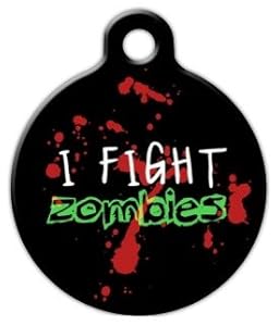 Dog Tag Art Custom Pet ID Tag for Dogs - Zombie Fighter - Large - 1.25 inch